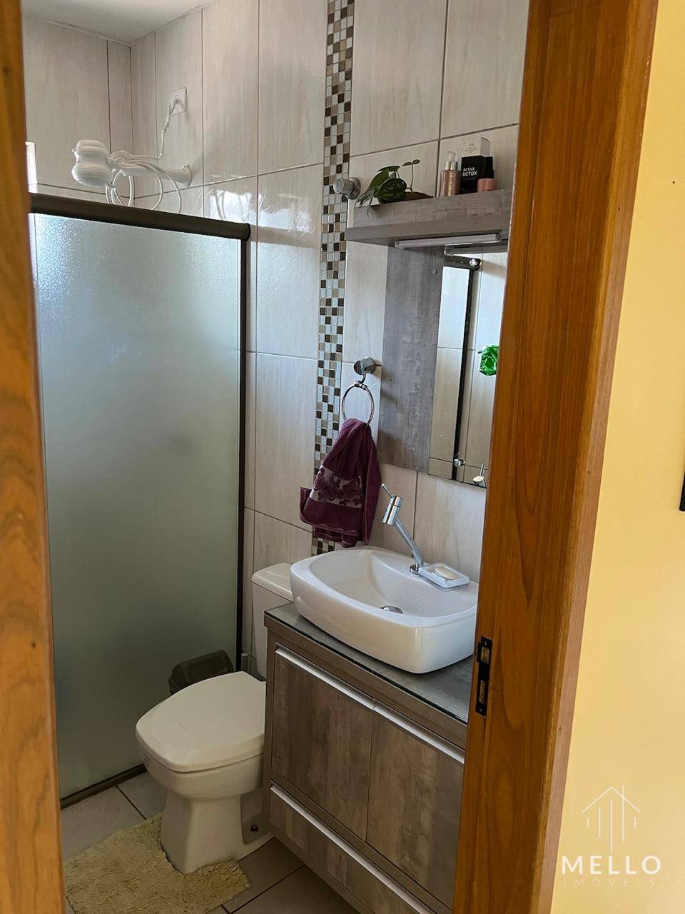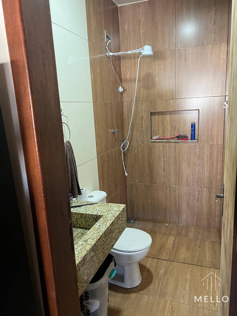- Banheiro social com box e armários